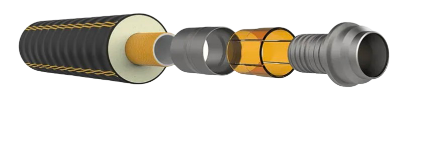 This is achieved through the use of high-temperature aramid reinforcement, enabling the system to handle demanding district heating and hot water distribution networks with reliability.
